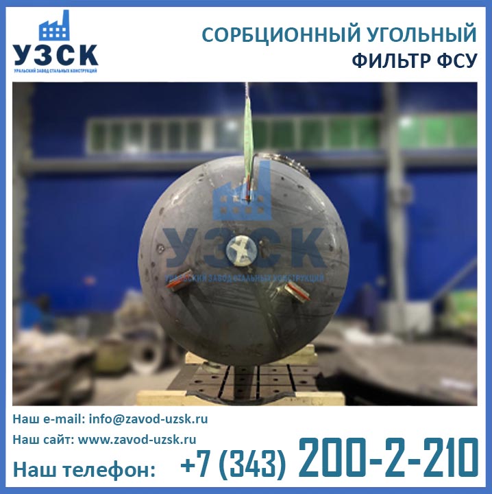 Качественную работу отопительных и промышленных котельных, линий по очистке конденсата и природных вод, электростанций обеспечивает фильтр сорбционный угольный типа ФСУ — вертикальный сосуд с одной камерой цилиндрической формы. Основное назначение оборудования состоит в глубокой очистке возвращаемого с производства конденсата от запахов, органических загрязнений и привкусов. Использование ФСУ в системах водоподготовки гарантирует очищение субстанции от масел, органических примесей, остатков нефтепродуктов до нормального значения — 0.52-1.0 мг/л. Купить в Нижнекамске угольные фильтры предлагает наш Уральский завод стальных конструкций. Мы выполняем производство ФСУ под нужды предприятия, возможно изготовление сорбционных фильтров ФСУ из нержавеющей стали включая корпус и внутренние устройства.