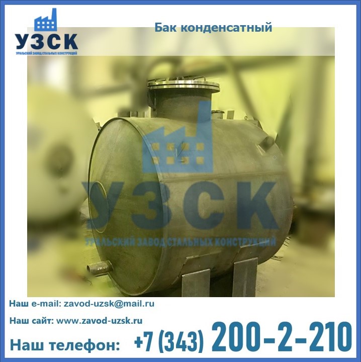 Многие заказчики стараются конденсатные баки купить по выгодной цене в компании «УЗСК» в Нижнекамске. Причин несколько. Производитель поставляет емкости с полным комплектом лестниц, площадок обслуживания. Бак после гидравлических испытаний покрывают специальной внутренней и наружной краской, накладывают теплоизоляцию или наваривают крепеж для навески минматов. Условия теплоизоляции согласуются с заказчиком.