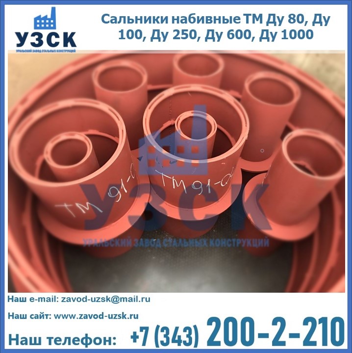 На производственных площадях Уральского Завода Стальных Конструкций в Нижнекамске профессиональные сотрудники занимаются проектированием и разработкой различных закладных деталей, в частности осуществляется производство и реализация набивных и нажимных сальников. Все изделия, которые можно приобрести у нас, отвечают установленным требованиям по ГОСТу, а также прочей нормативной документации.